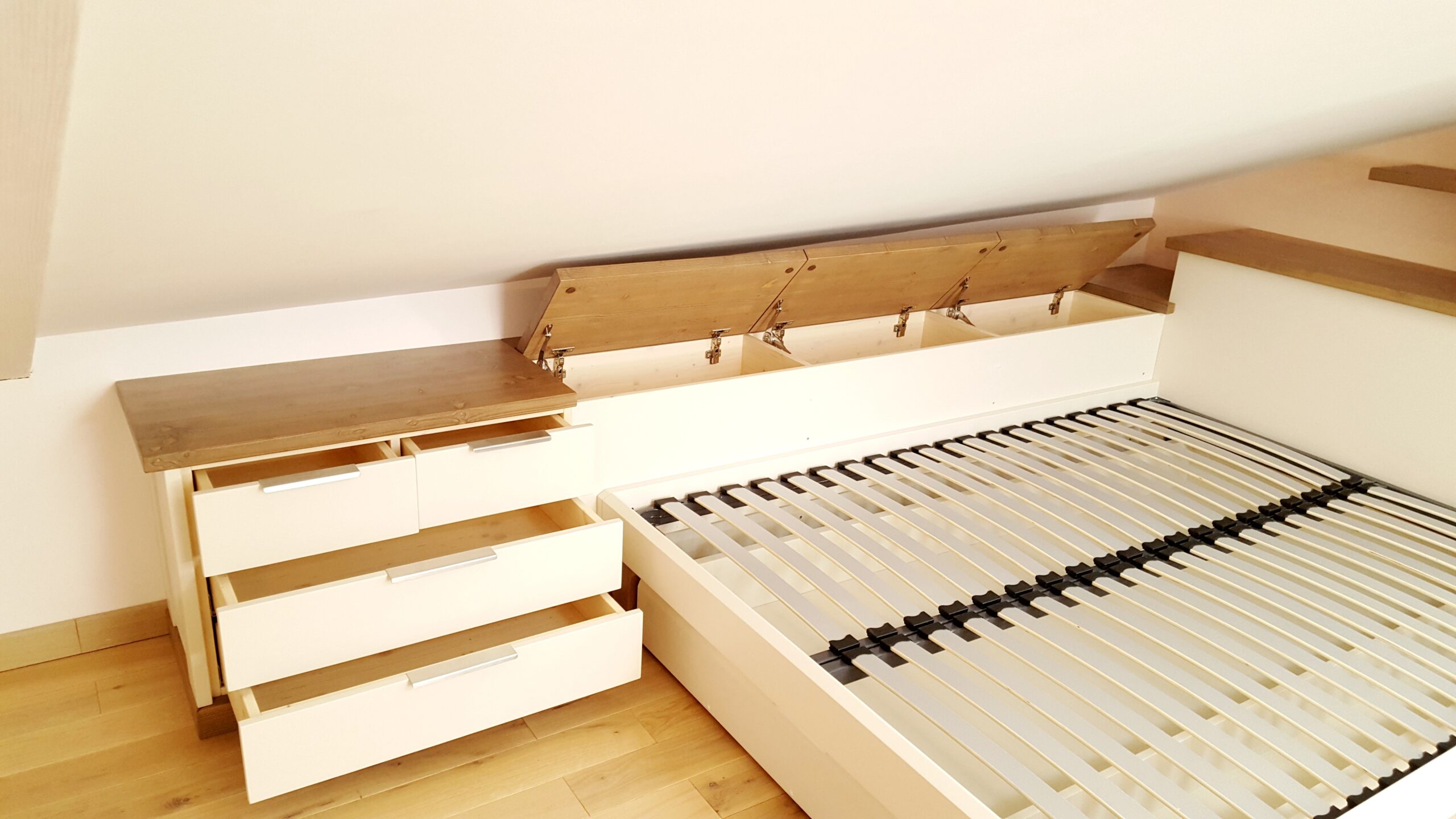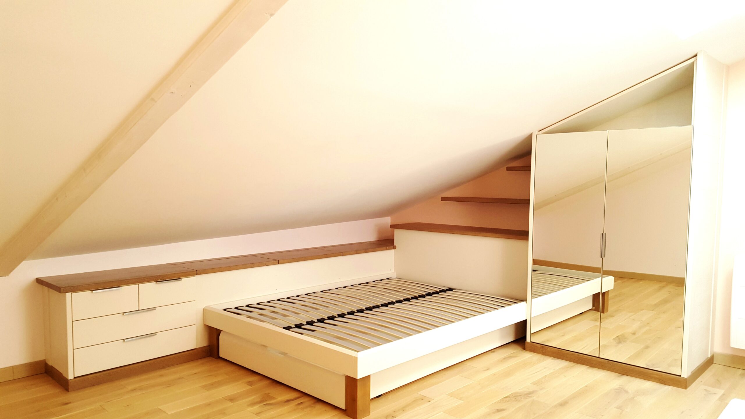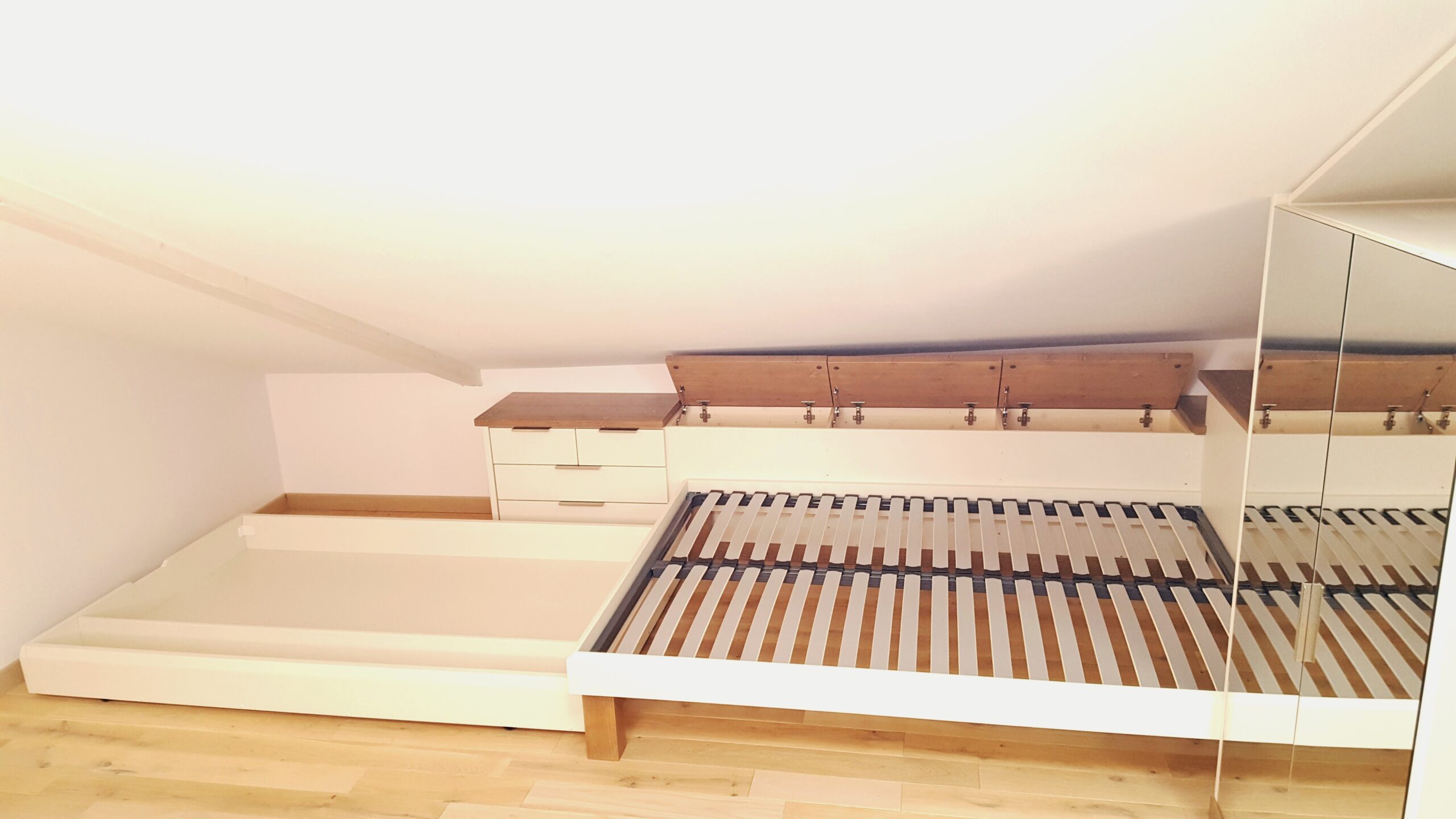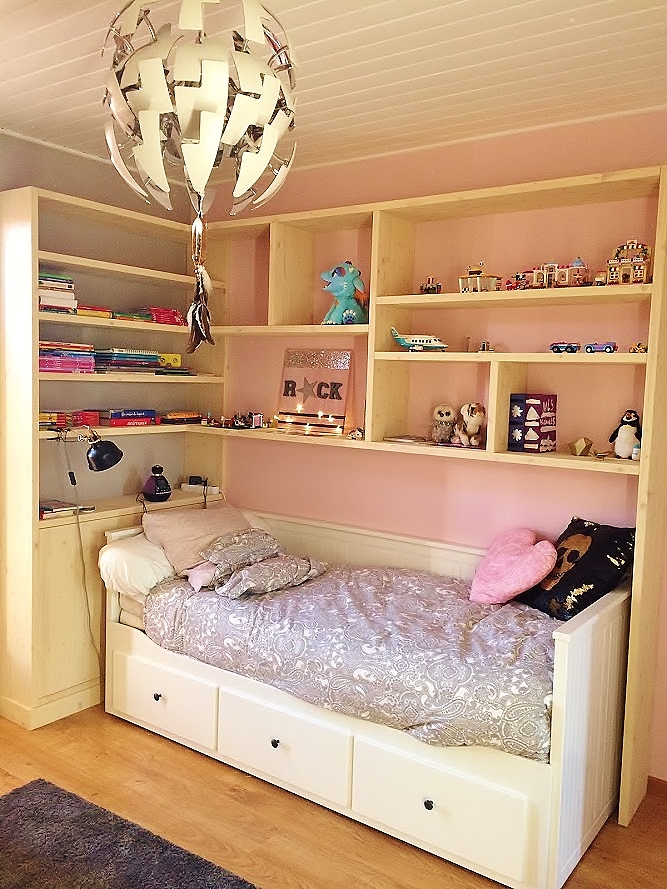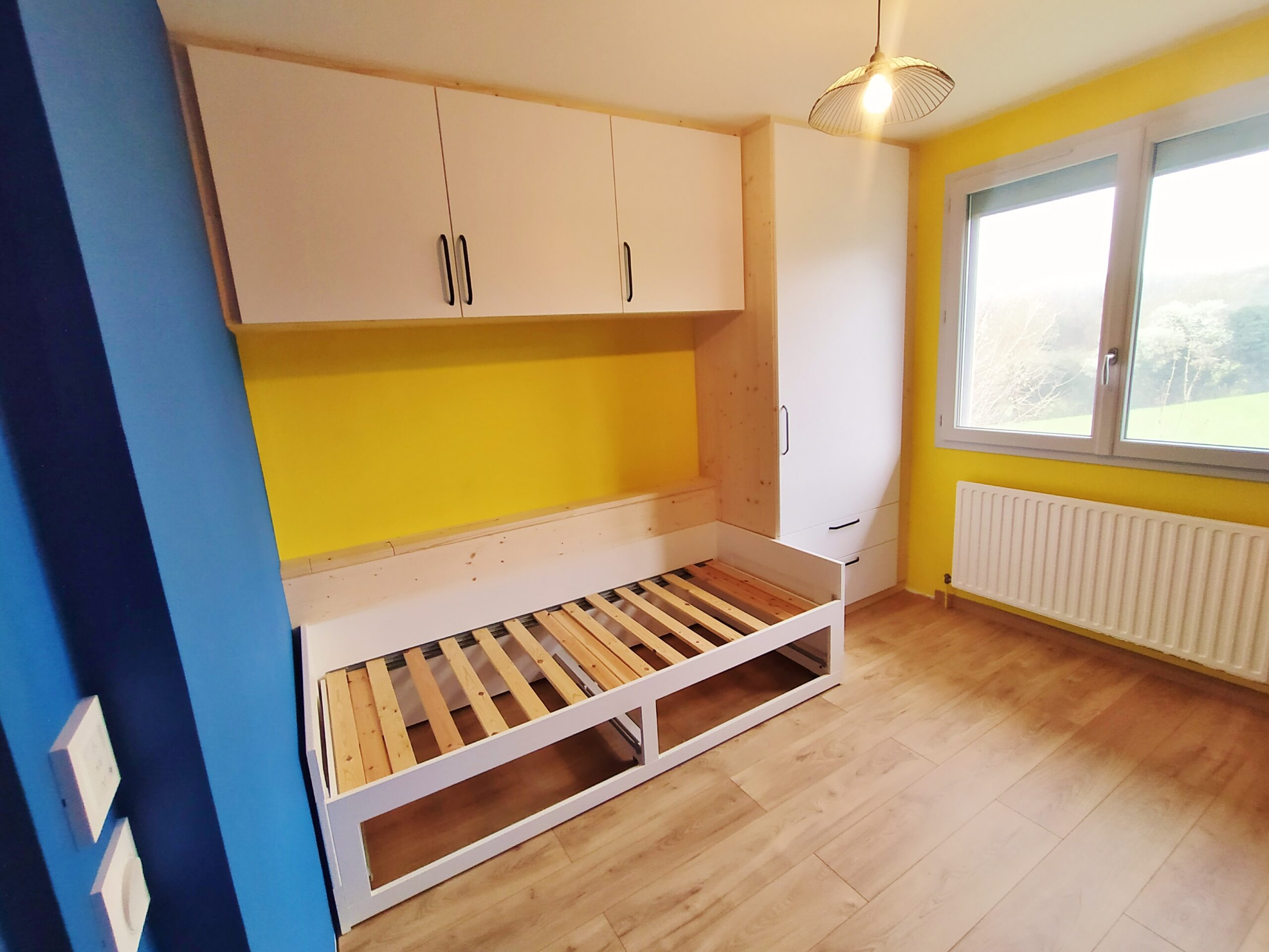 Chambre Chambre enfant avec lit gigogne et de grands coffres à jouets Chambre Bois Tête de lit en frêne et luminaire fabriqué à partir d’une très ancienne poutre en chêne Chambre Savoyarde Chambre enfant