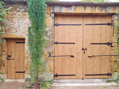 Porte et portail avec clous en fer forgé