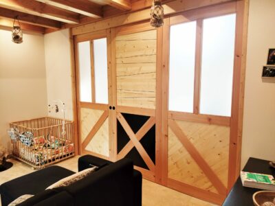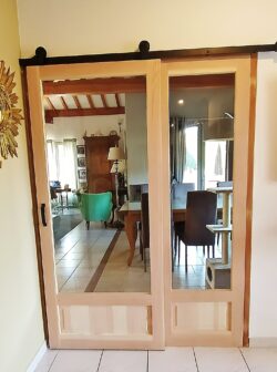Porte à galandage pour séparer les espaces. Cloison qui devient invisible une fois ouverte