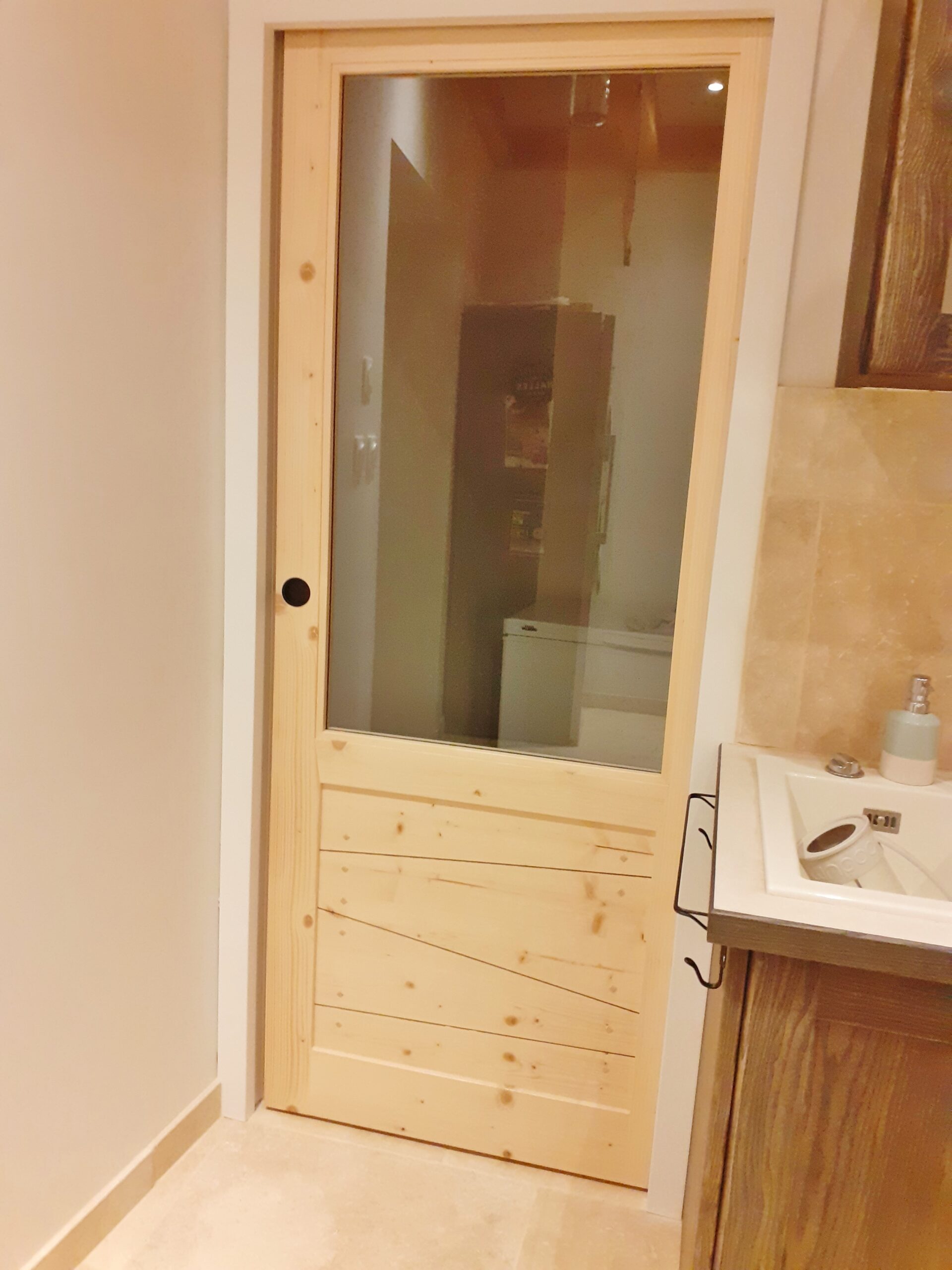 Porte à galandage pour séparer les espaces. Cloison qui devient invisible une fois ouverte