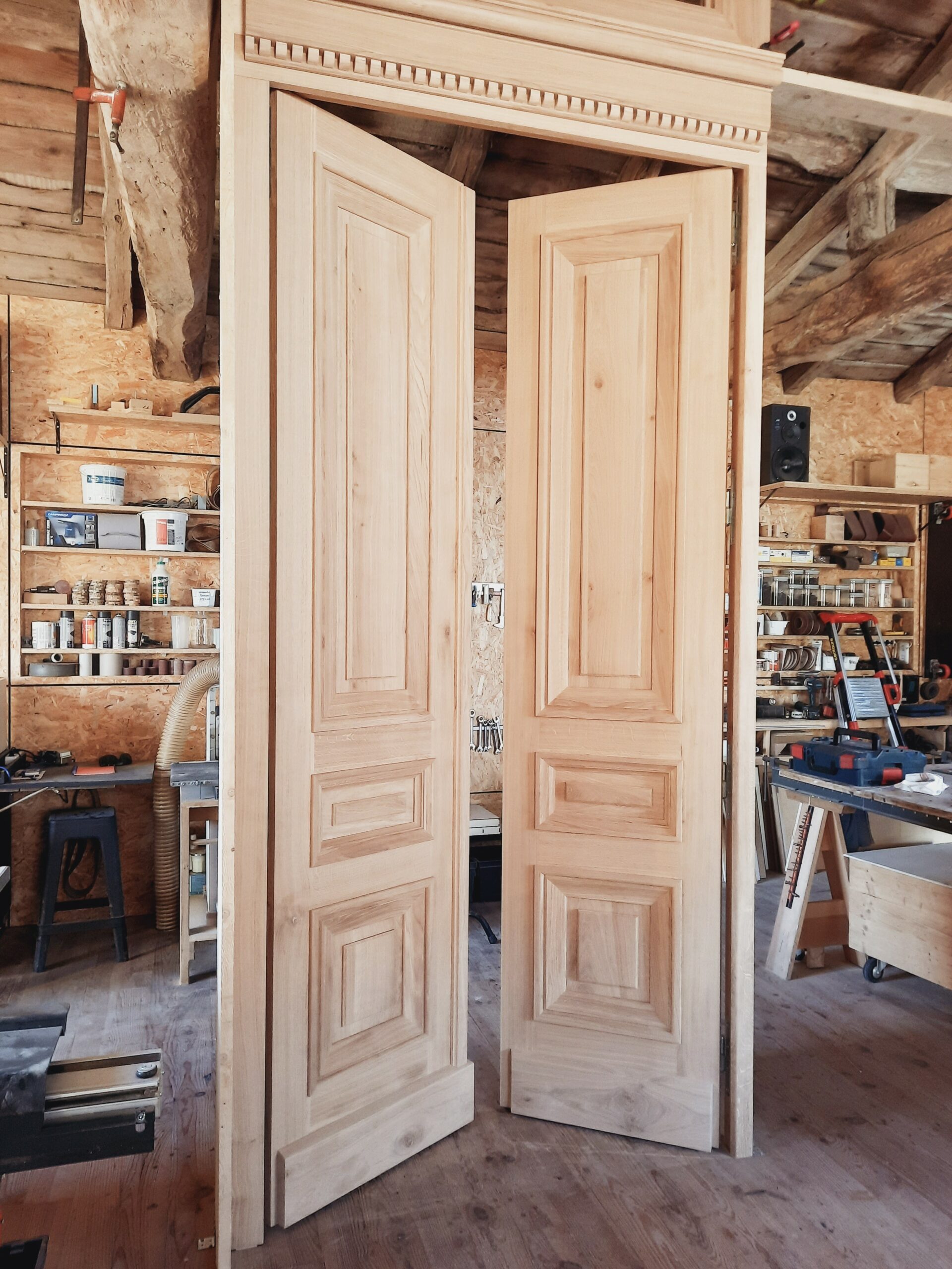 Fabrication traditionnelle en chêne, avec clous retournés issue de la dernière clouterie française !